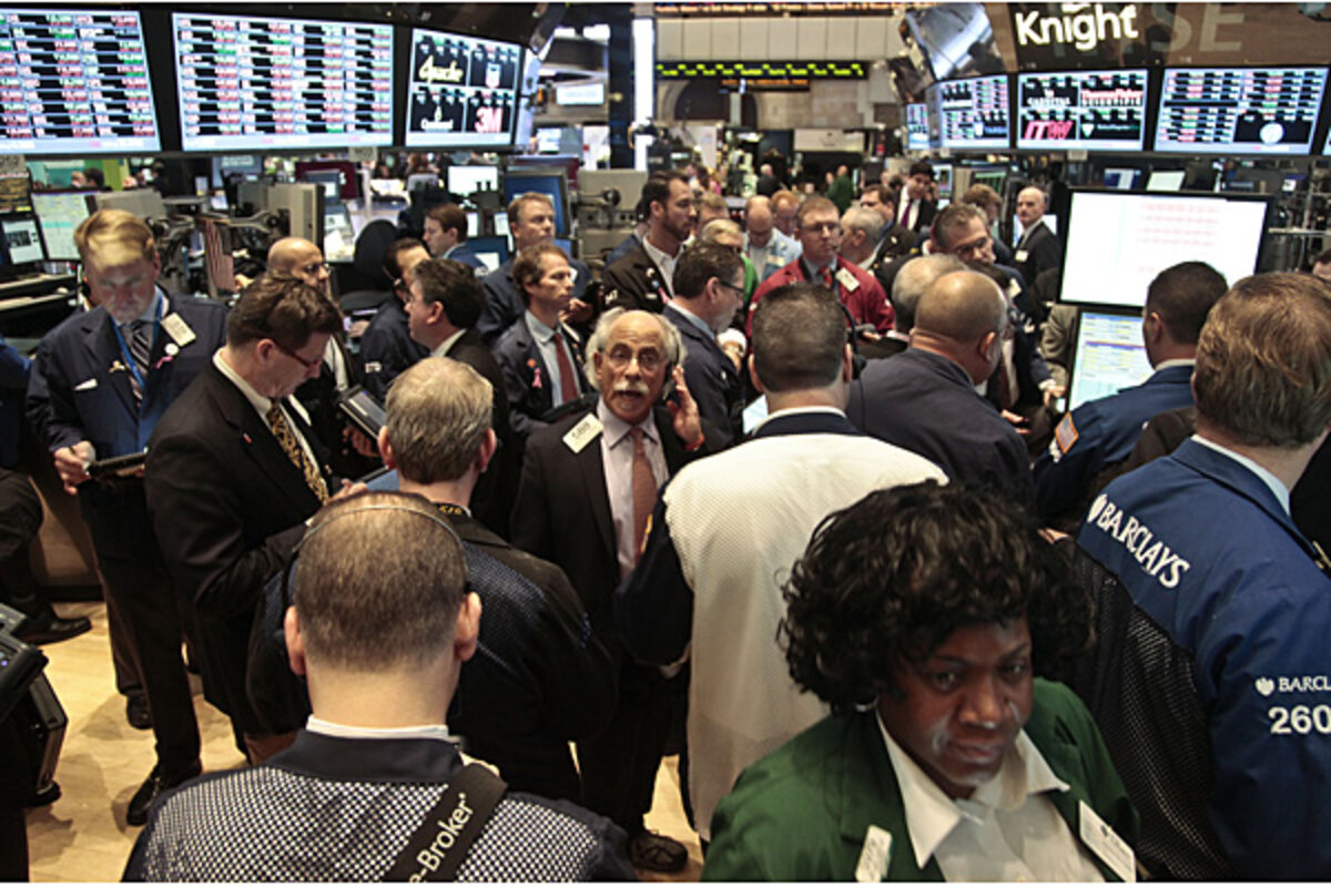The Dow Jones industrial average fell 42.31 points to 12,967.37. The Standard & Poor's 500 index declined 2.86 to 1,406.29. And the Nasdaq composite index managed a 9.93-point increase to 2,976.78.