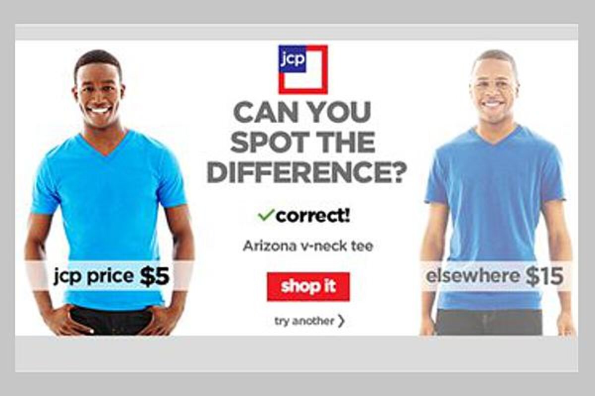 To promote the strategy, Penney on Wednesday will begin launching TV, print and digital ads. One TV ad compares a $9 polo shirt under its store brand Arizona with $19 "elsewhere." ''Two polos, same color, same vibrant, same details, same swing, same swagger, different prices," the ad said.