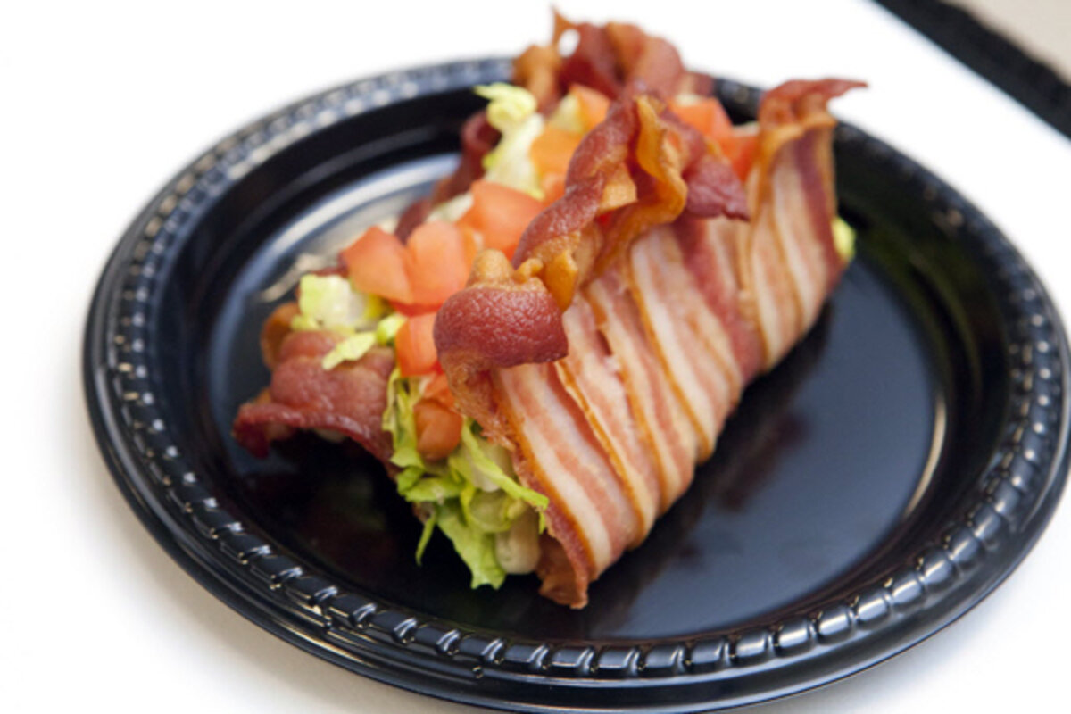 Bacon-shell tacos, or Bacos, on the menu at Mich. minor-league park
