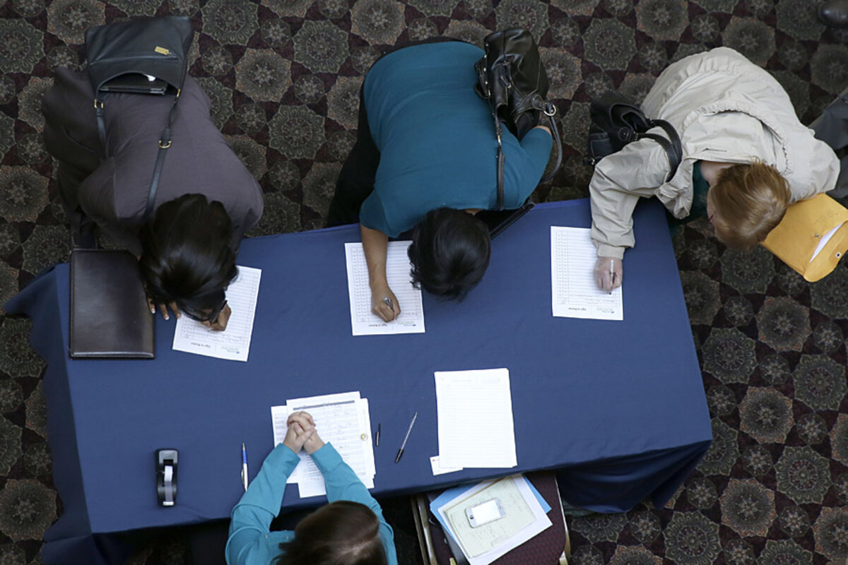 The four-week moving average of聽claims, considered a better measure of labor market trends as it irons out week-to-week volatility, fell 4,250 to 294,750.