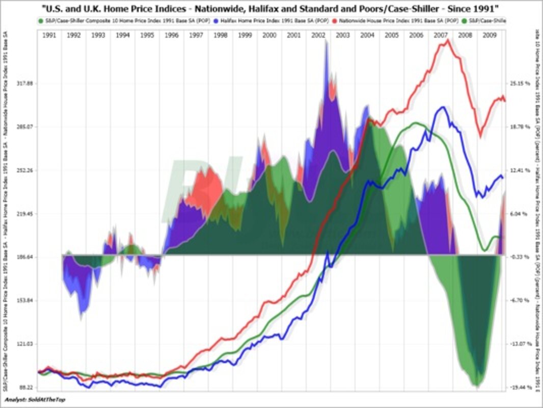 One notable example can be seen by comparing the S&P/Case-Shiller index to that of the two popular U.K. home prices indices.