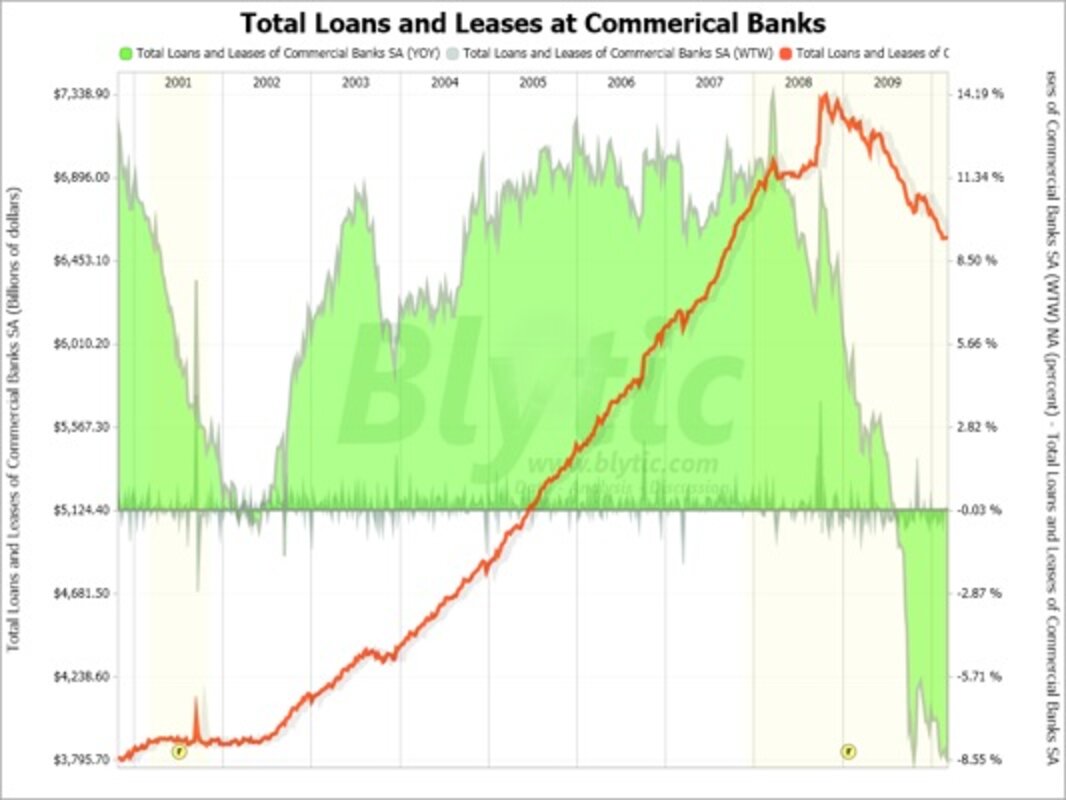 The latest weekly read of 鈥溾 indicates that banks are pulling back lending at the fastest pace on record with total loans and leases declining 8.55% on an annual basis.
