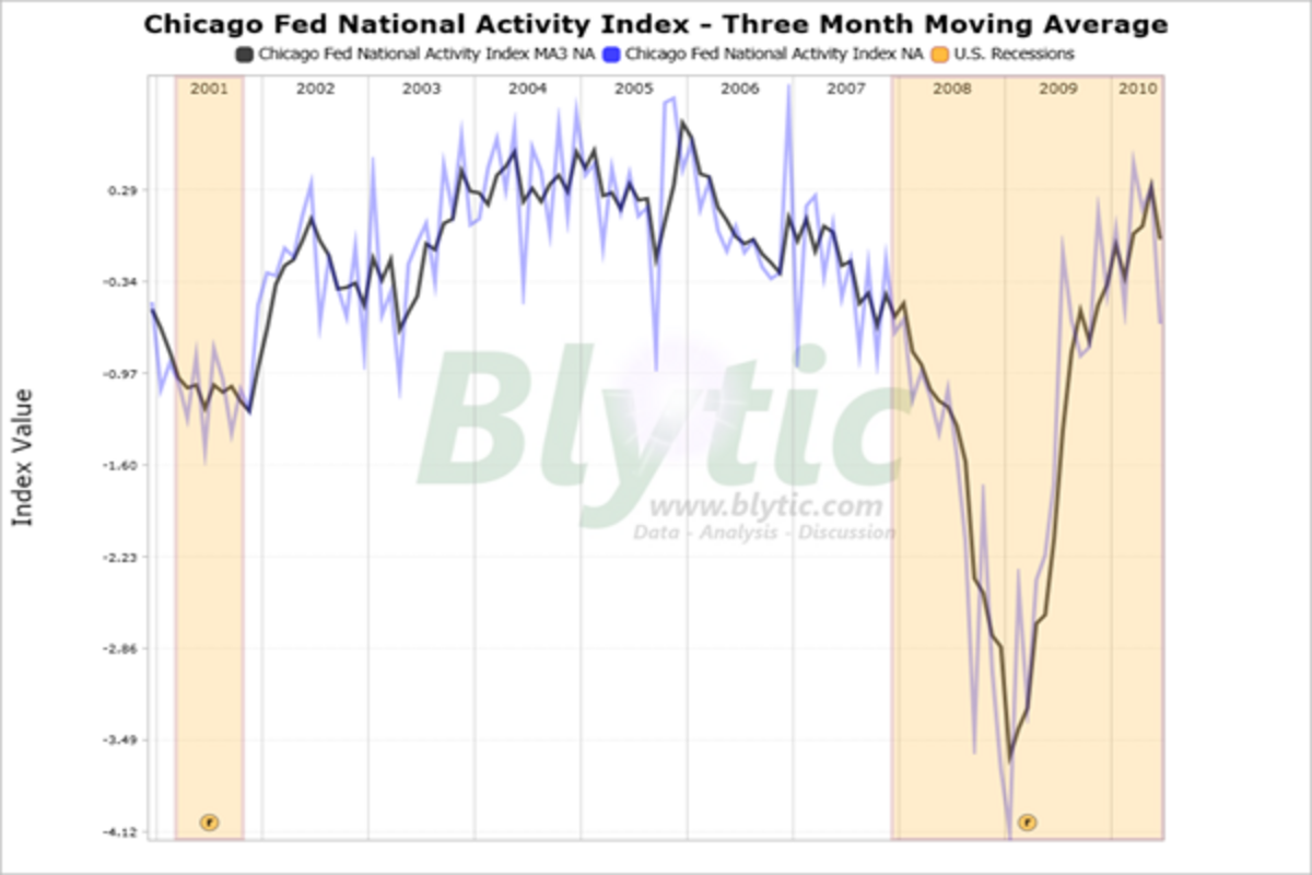 The Chicago Fed regards a value of zero for the total index as indicating that the national economy is expanding at its historical trend rate while a negative value indicates below average growth.