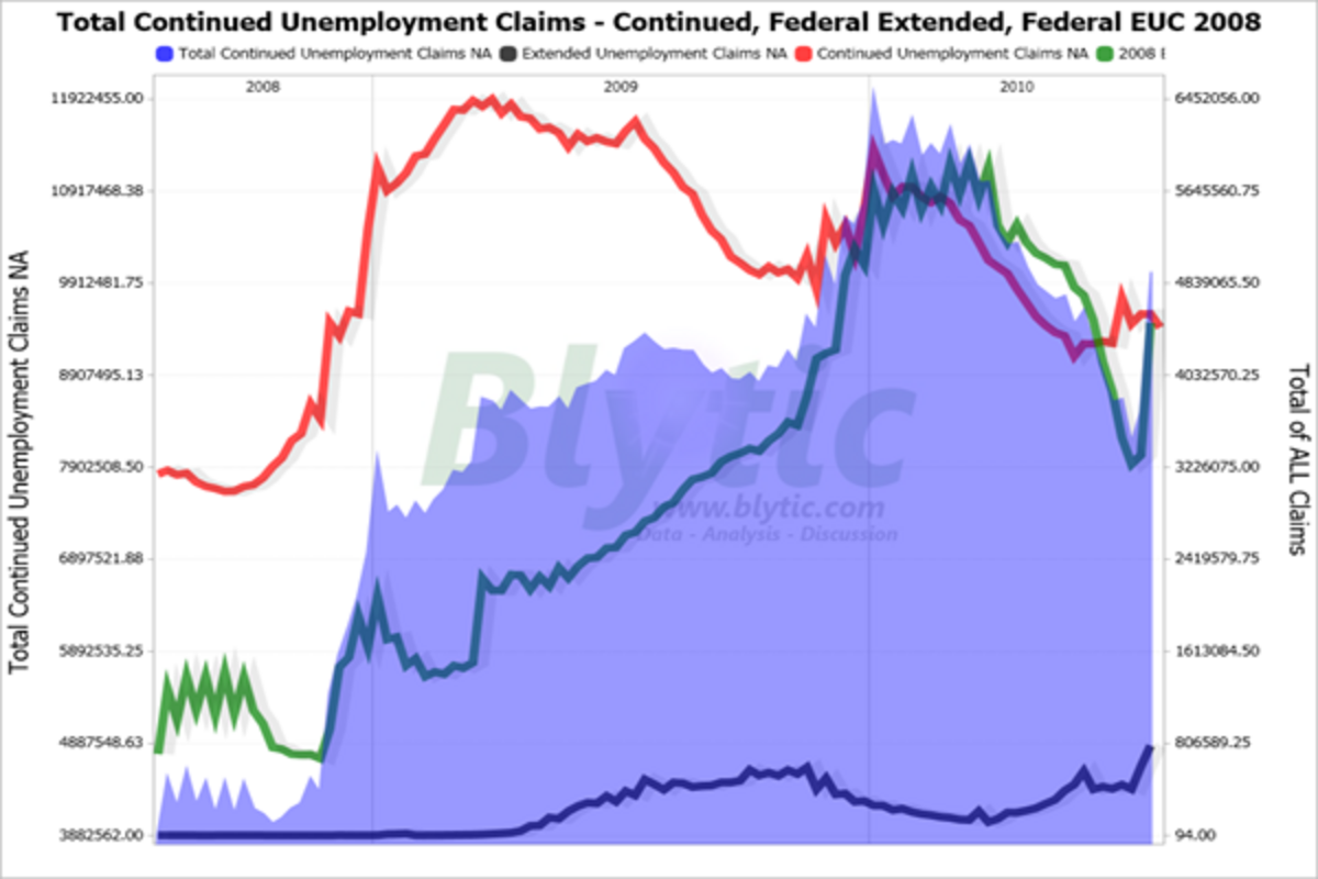Since the middle of 2008 though, two federal government sponsored 鈥渆xtended鈥 unemployment benefit programs (the 鈥渆xtended benefits鈥 and 鈥淓UC 2008鈥 from recent legislation) have been picking up claimants that have fallen off of the traditional unemployment benefits rolls.
