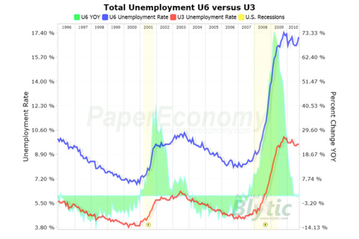 To calculate the 鈥渢otal鈥 rate of unemployment we would simply use this larger group rather than the smaller and more restrictive 鈥渦nemployed鈥 group used in the traditional unemployment rate calculation.