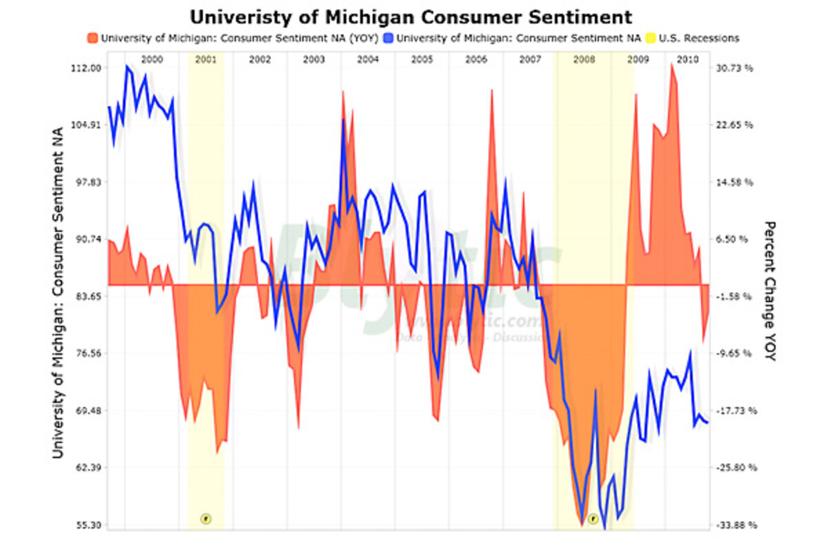 Today's release of the for October indicated another decline in consumer sentiment with a reading of 67.9 dropping 3.82% below the level seen last year.