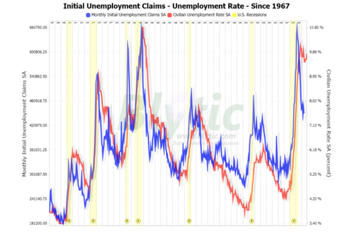 Historically, unemployment claims both 鈥渋nitial鈥 and 鈥渃ontinued鈥 (ongoing claims) are a good leading indicator of the unemployment rate and inevitably the overall state of the economy.