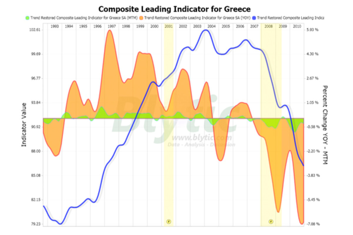 Looking at the , Greece makes by far in all the Eurozone appearing to have clearly collapsed into recession.