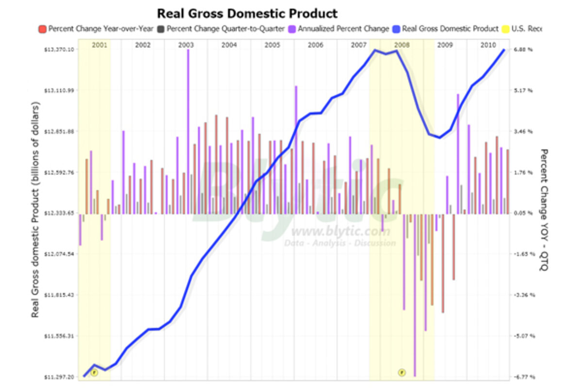 On a year-over-year basis real GDP increased 2.70% while the quarter-to-quarter non-annualized percent change was 0.69%.