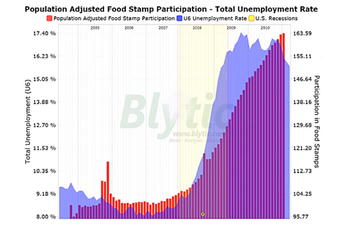 The latest shows that in January, an additional 105,470 new recipients were added to the food stamps program, an increase of 12.06% on a year-over-year basis, while household participation increased 14.52%.