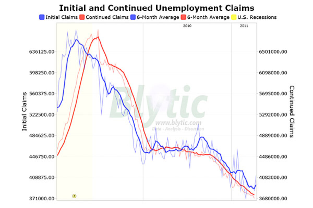 Seasonally adjusted 鈥渋nitial鈥 unemployment increased by 27,000 to 412,000 claims from last week鈥檚 revised 385,000 claims while seasonally adjusted 鈥渃ontinued鈥 claims declined by 58,000 resulting in an 鈥渋nsured鈥 unemployment rate of 2.9%.