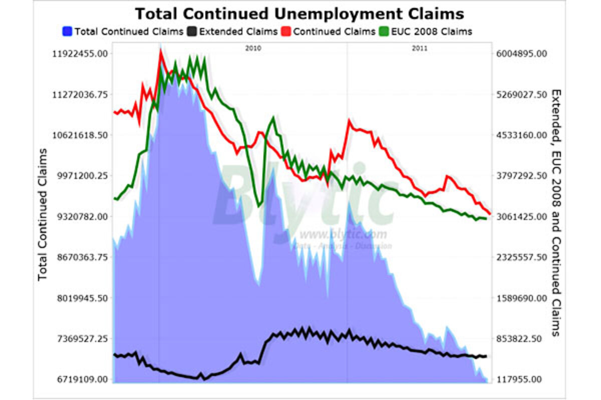 Since the middle of 2008 though, two federal government sponsored 鈥渆xtended鈥 unemployment benefit programs (the 鈥渆xtended benefits鈥 and 鈥淓UC 2008鈥 from recent legislation) have been picking up claimants that have fallen off of the traditional unemployment benefits rolls.