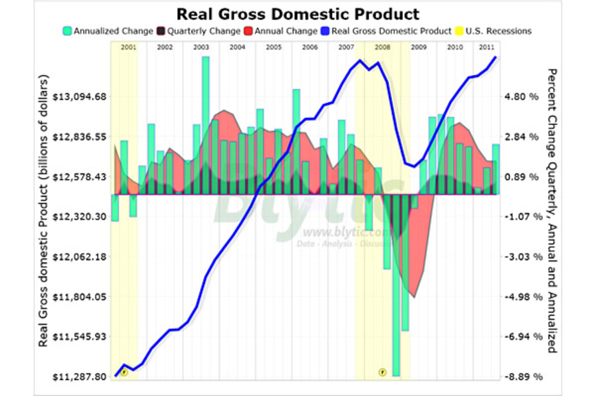 Today, the (BEA) released their first showing that the economy continued to expand with real GDP increasing at an annualized rate of just 2.5% from Q2 2011.