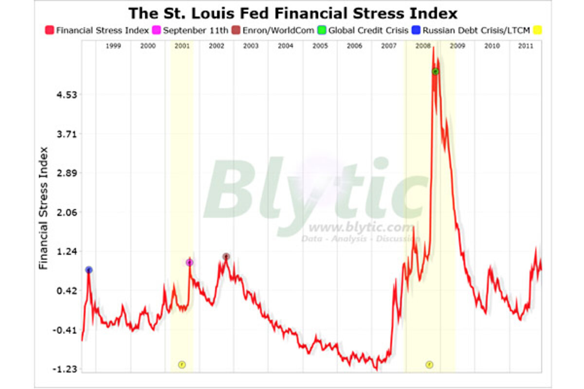 The Federal Reserve Bank of St. Louis recently began publishing a new weekly index that seeks to track the general level of financial stress.