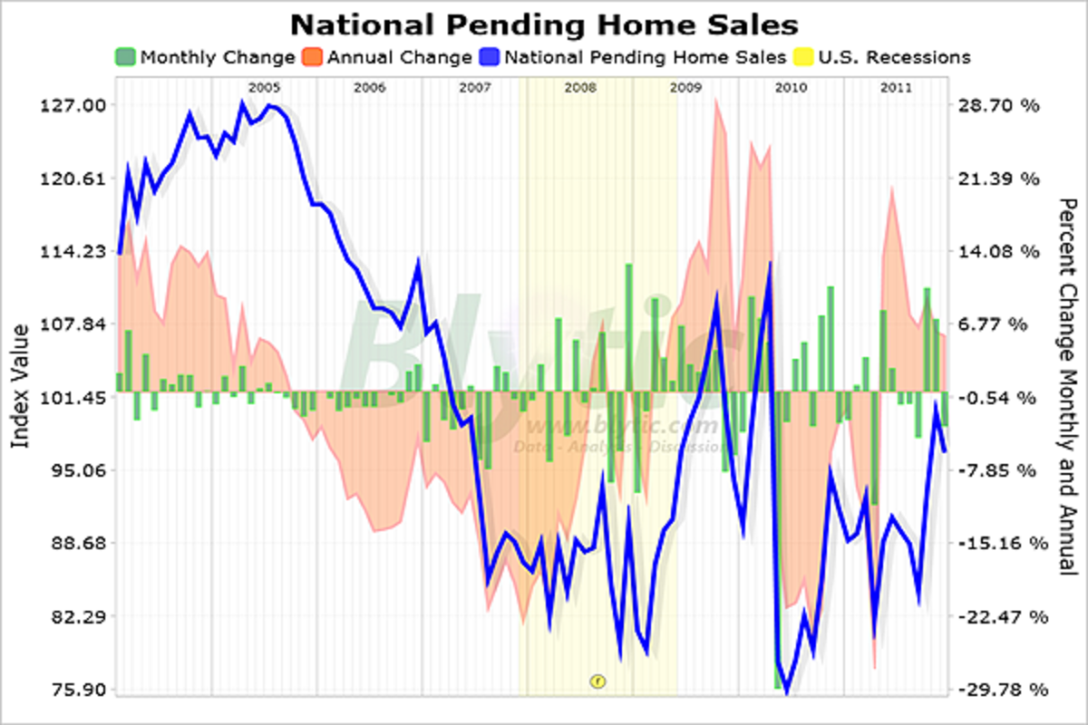 Today, the (NAR) released their Pending Home Sales Report for December showing that home sales slowed with the seasonally adjusted national index dropping 3.5% since November while increasing 5.57% above the level seen in December 2010.