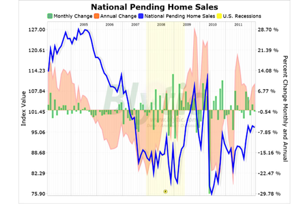 Today, the National Association of Realtors (NAR) released their Pending Home Sales for February showing that pending home sales declined a bit with the seasonally adjusted national index falling 0.5% since January while increasing 9.2% above the level seen in February 2011.