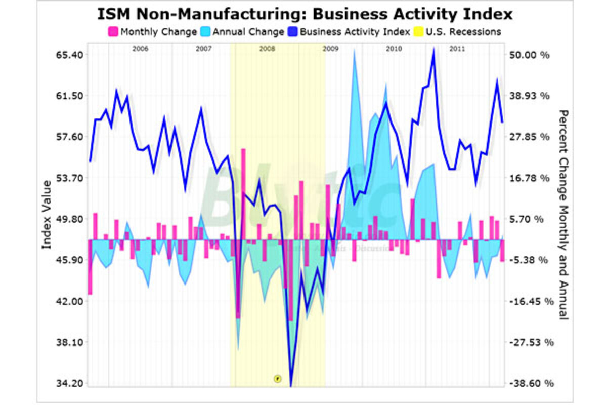 Today, the Institute for Supply Management released their latest indicating that service related business activity declined notably in March with the business activity component dropping while the overall non-manufacturing index declined to 56.0 from 57.3 in February.