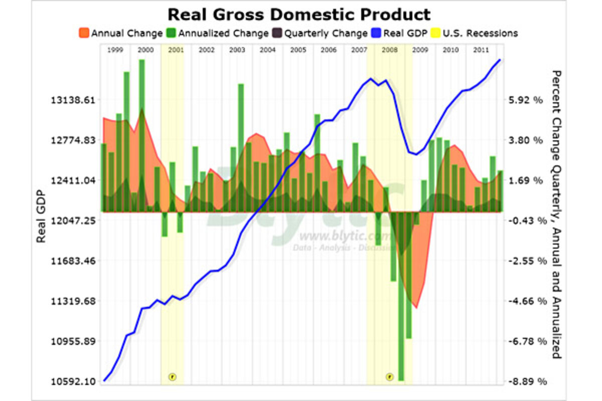 Today, the Bureau of Economic Analysis (BEA) released their first聽 of the Q1 2012 GDP report showing that the economy continued to expand with real GDP increasing at an annualized rate of 2.2% from Q4 2011.