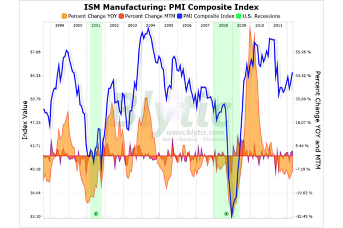 At 54.8 the purchasing manager鈥檚 composite index (PMI) rose 2.62% since March remaining 8.21% below the level seen a year earlier.