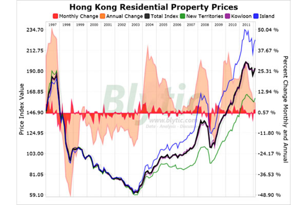 Today, the University of Hong Kong released their (HKU-REIS) indicating that, in February, the price of residential properties increased a notable 2.05% since January and climbed 5.96% above the level seen in February 2011.