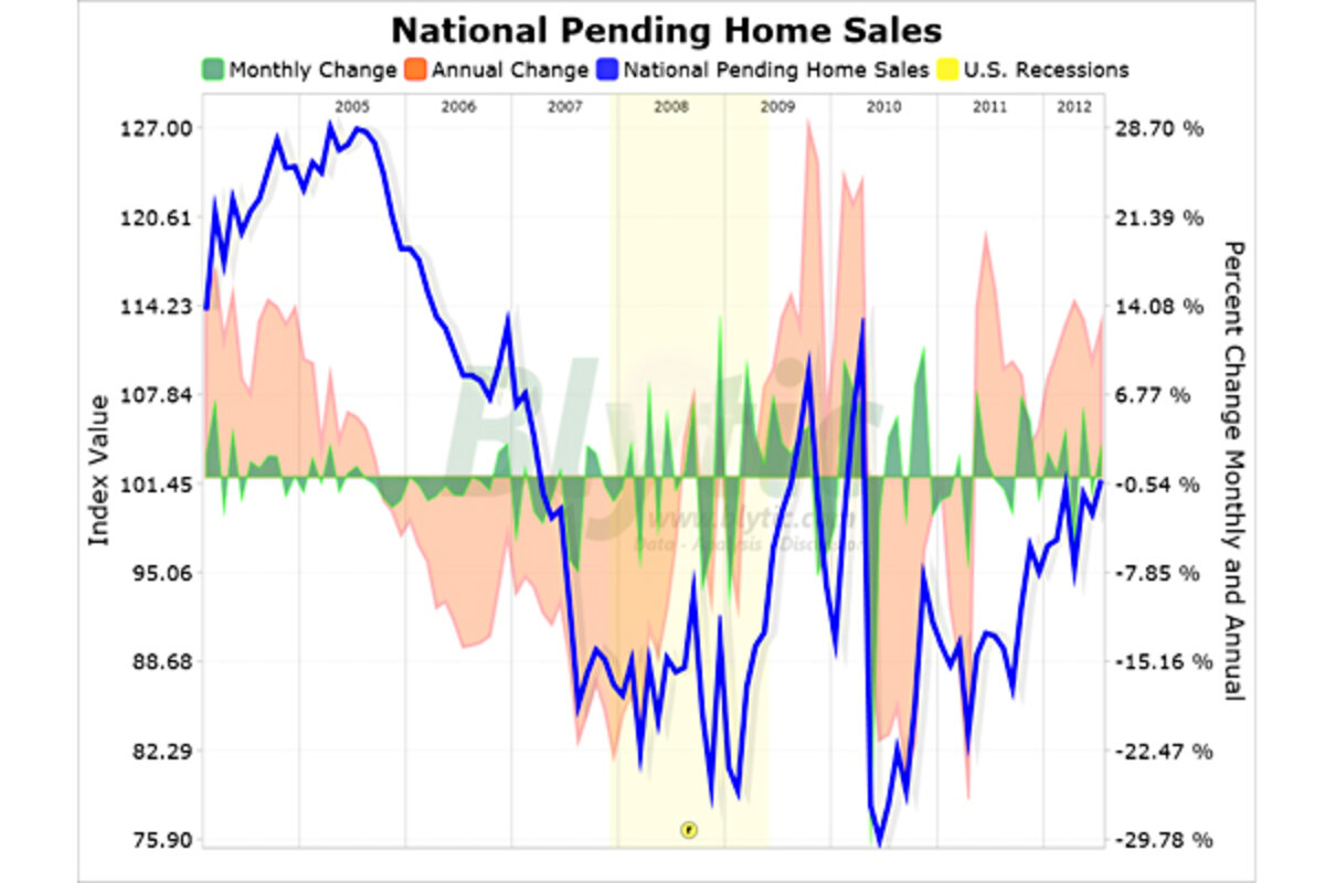 Today, the National Association of Realtors (NAR) released their Pending Home Sales for July showing that pending home sales improved with the seasonally adjusted national index climbing 2.4% since June while increasing 12.4% above the level seen in July 2011.