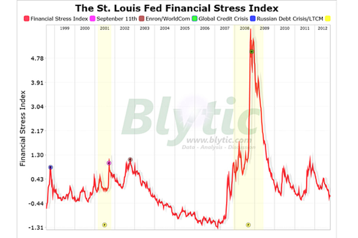 罢丑别听Federal Reserve Bank of St. Louis聽recently聽began publishing a new weekly index聽that seeks to track the general level of financial stress.