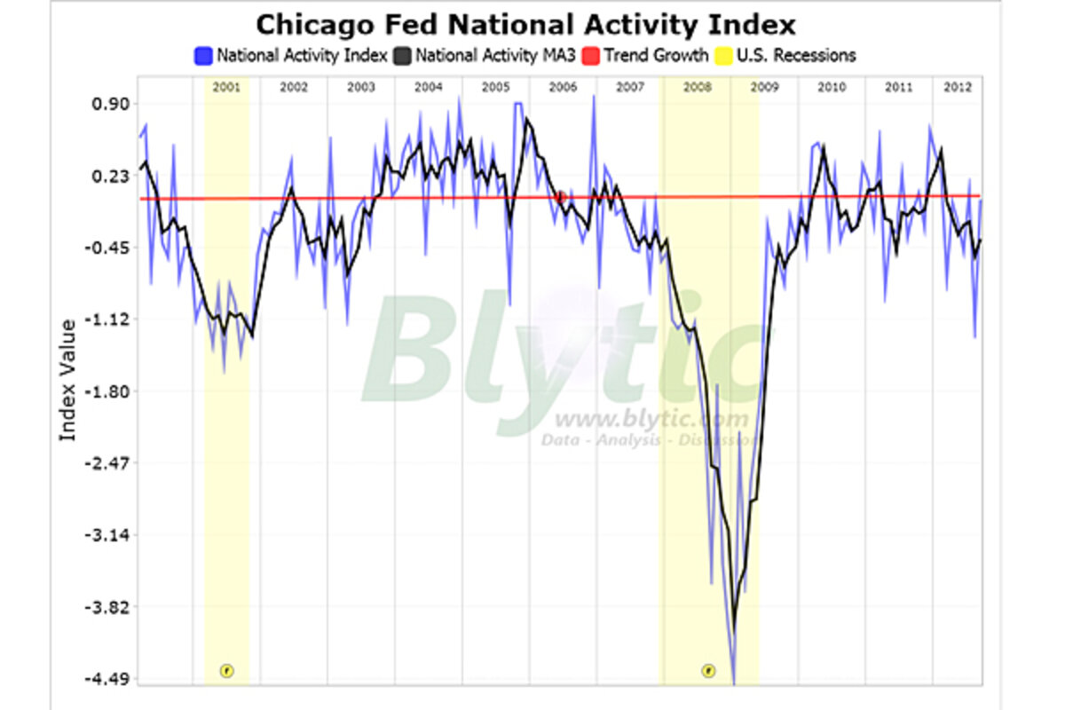 A value at or below -0.70 for the three month moving average of the national activity index (CFNAI-MA3) indicates that the national economy has either just entered or continues in recession.聽