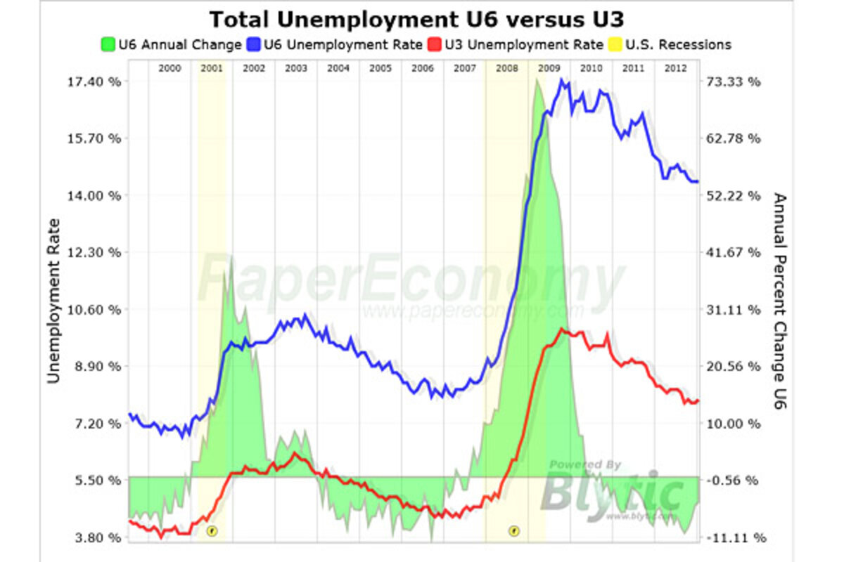 The Bureau of Labor Statistics considers 鈥渕arginally attached鈥 workers (including discouraged workers) and persons who have settled for part time employment to be 鈥渦nderutilized鈥 labor.