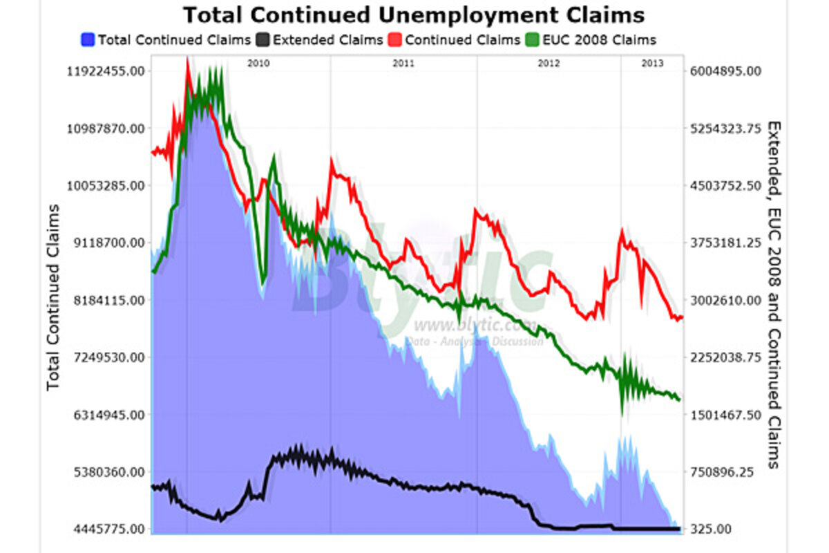 Since the middle of 2008 though, two federal government sponsored 鈥渆xtended鈥 unemployment benefit programs (the 鈥渆xtended benefits鈥 and 鈥淓UC 2008鈥 from recent legislation) have been picking up claimants that have fallen off of the traditional unemployment benefits rolls.聽