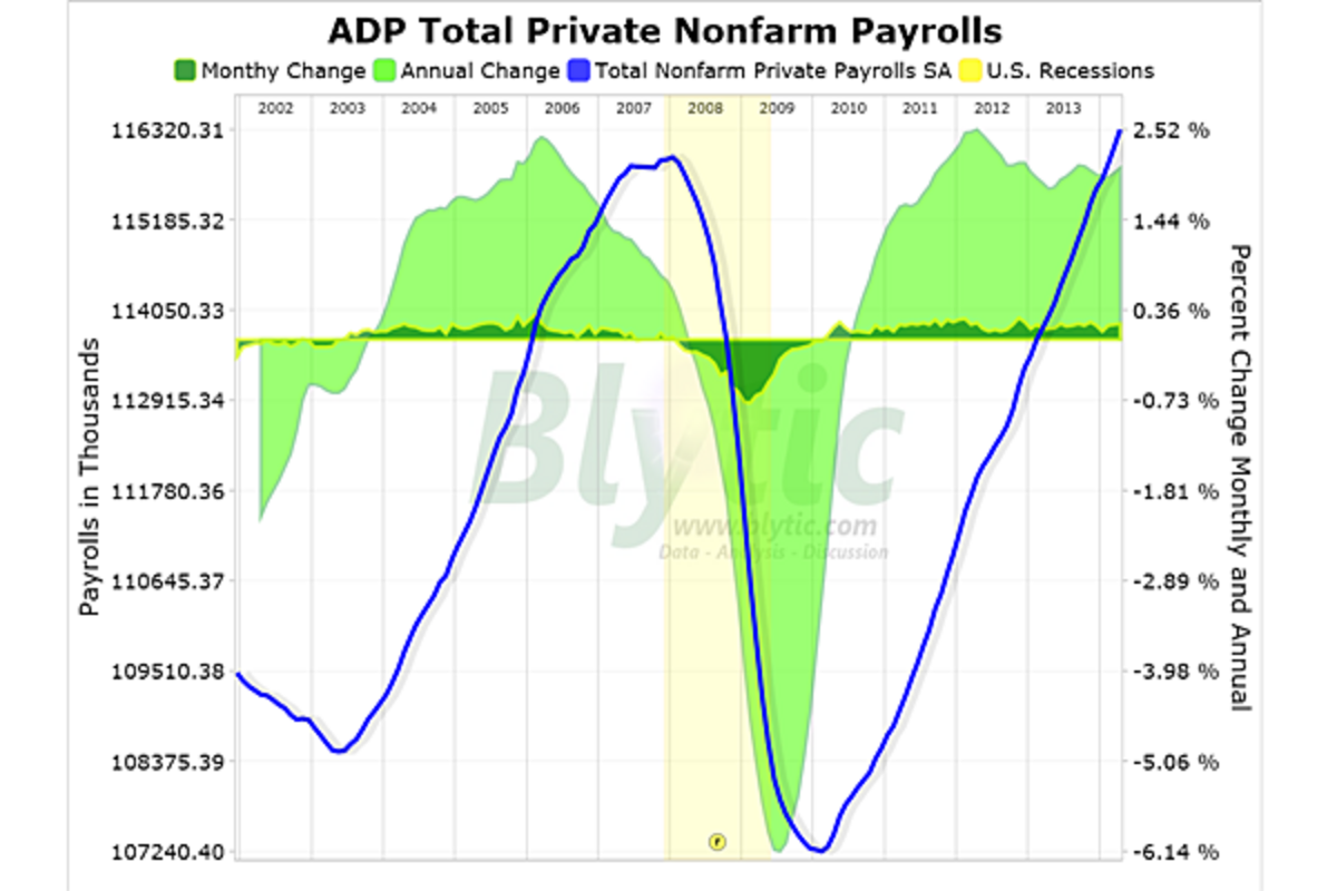 Today, private staffing and business services firm聽聽released the聽聽indicating that the situation for private employment in the U.S. improved in聽April as private employers added 220,000 jobs in the month bringing the total employment level 2.06% above the level seen in April 2013.聽