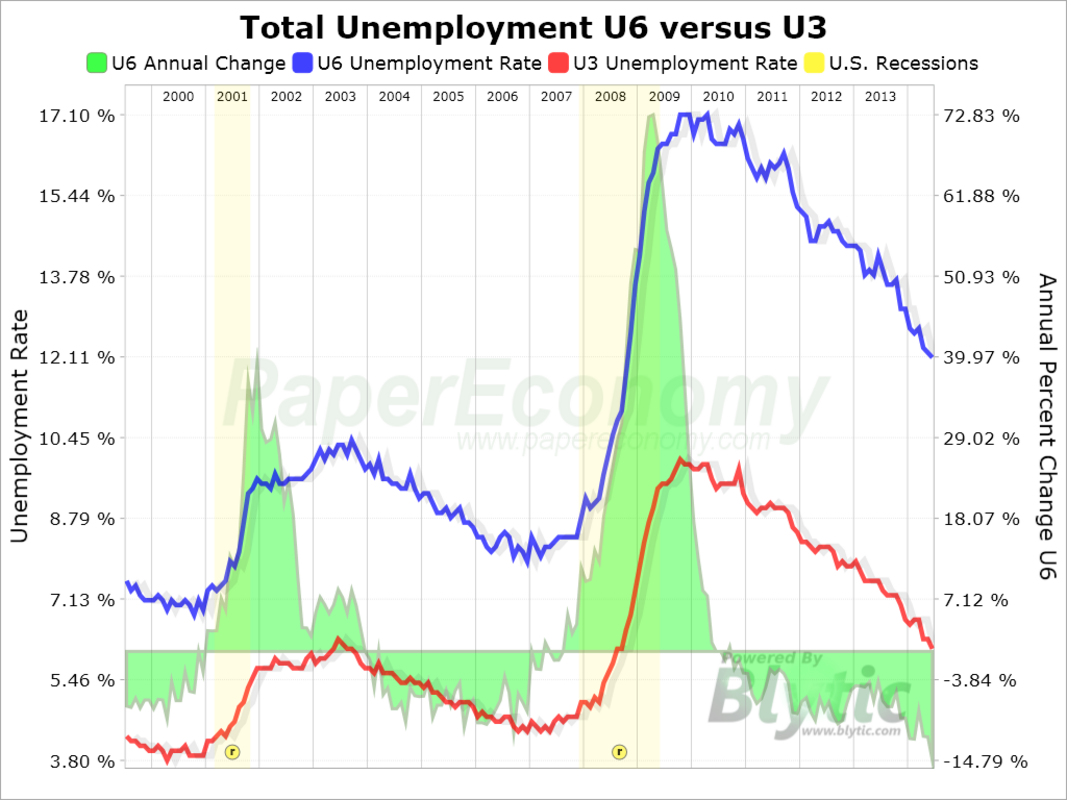 The Bureau of Labor Statistics considers 鈥渕arginally attached鈥 workers (including discouraged workers) and persons who have settled for part time employment to be 鈥渦nderutilized鈥 labor.