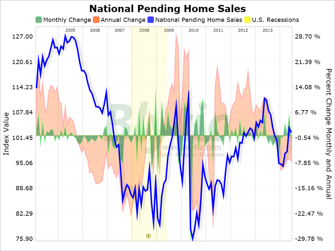 罢丑别听聽(NAR) released their聽聽for June showing that pending home sales declined with the seasonally adjusted national index falling 1.1 percent from May and dropping 7.3 percent below the level seen in June 2013.聽