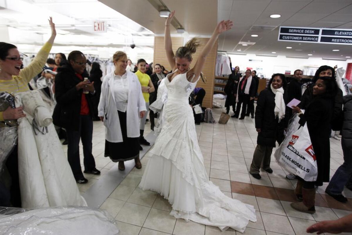 Sims keeps track of trunk and clearance sales by following her favorite bridal stores on Facebook, and frequently checking the events section of their websites.