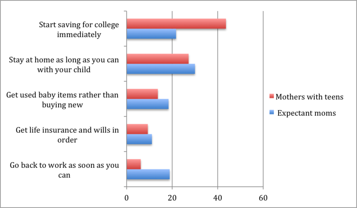 Both groups of mothers agreed on one financial issue: The choice to go back to work for additional family income was the top source of marital tension surrounding the birth of children. About 31% of expectant mothers and 30% of experienced mothers said听the decision to stay at home or return to work was听the No. 1 reason they fought听with their spouse.