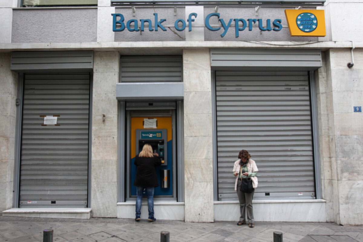 As a result, Cyprus' banks lost sums of money 聽that were enormous relative to the small size of Cyprus' economy. It seems in fact that the losses were nearly as large as the size of Cyprus' annual GDP. It's as if America's bank required a capital injection of $15 trillion.聽