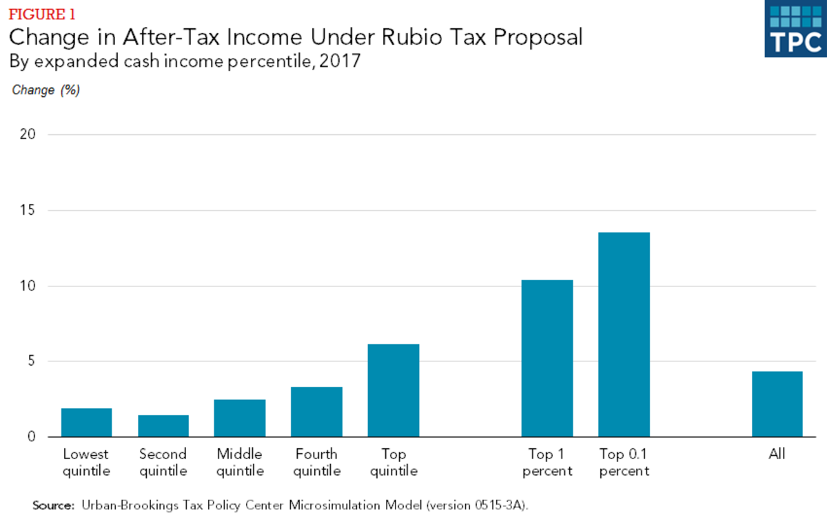 Rubio has been ambiguous about the refundability of this credit, and his staff refused to answer TPC鈥檚 questions about details. For its analysis, TPC assumed the credit would be refundable only to the extent payroll taxes exceed the Earned Income Tax Credit.