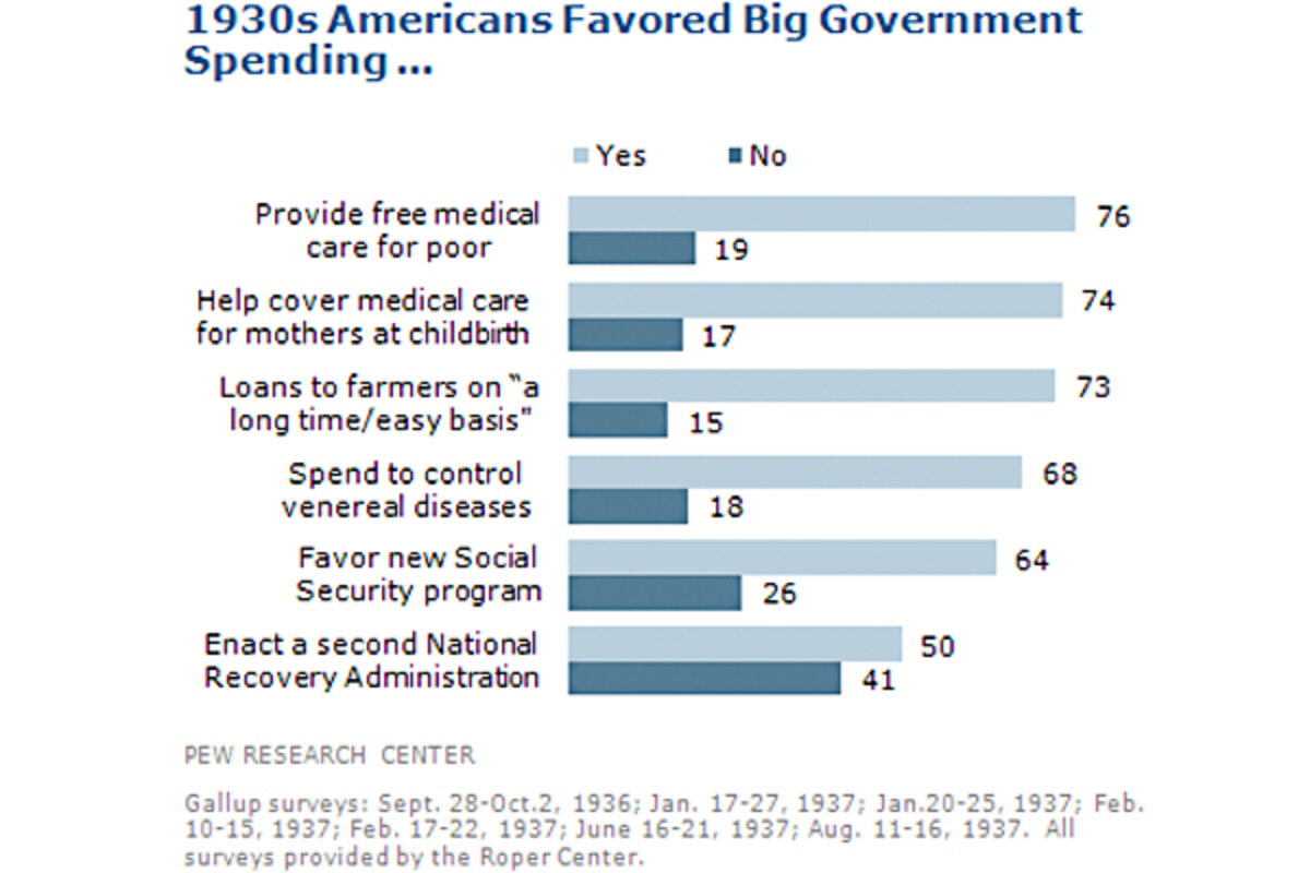 The just dug up some stats about how people during the 1930's, another period of harsh economic realities, felt about Government. Astonishingly, they found that in many ways, the reactions, hopes and desires were the opposite of those that are so prevalent today...