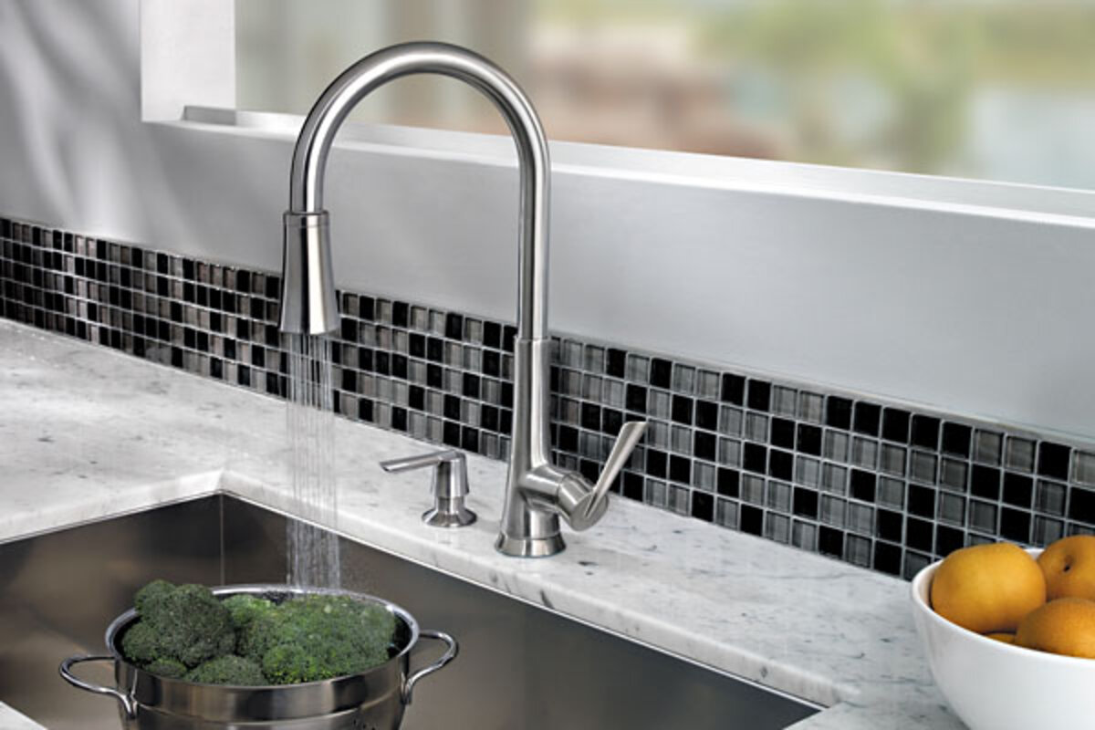聽The biggest determining factor in the rate of water use at a home faucet is the aerator, which typically screws onto the end of a faucet. These can restrict water flow by as much as a gallon per minute. For example, most kitchen faucets come with aerators that restrict flow to 2.2 gallons per minute, while bathroom faucets restrict flow to 1.5 gallons per minute. If you install aerators on these faucets, you can reduce them both easily to 1.0 gallons per minute (or move the bathroom aerator to the kitchen, so you have 1.5 in the kitchen and 1.0 in the bathroom).