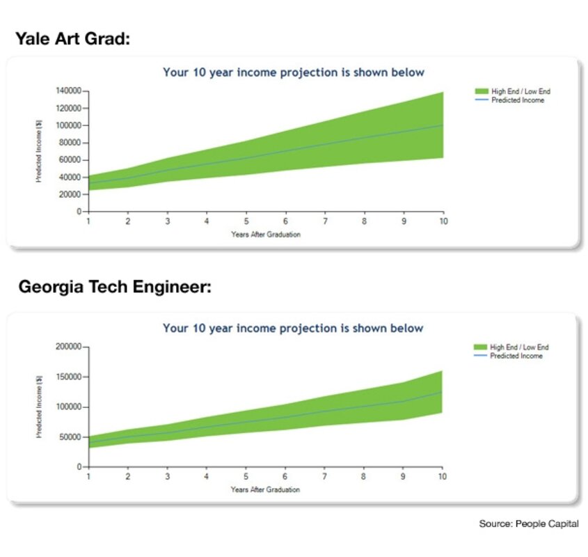 The calculator asks for basic transcript information, including test scores, GPA, and high school and college names. People Capital says its historical data sets on income trends for these various factors can offer a range of salaries the grad will likely earn for up to 10 years after school. But is this really reliable?