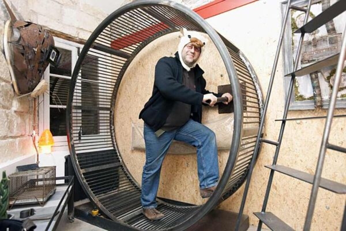 For 99 euros ($148) a night, guests can sleep like a hamster (clean sheets, but the bed is next to hamster litter), drink like a hamster, eat grains like a hamster. And what furry pet hotel -- even one in an 18th-century caretaker's room -- would be complete without a hamster wheel? (Warning: The video below contains a grown French man with a hamster hat running on a man-sized hamster wheel.)