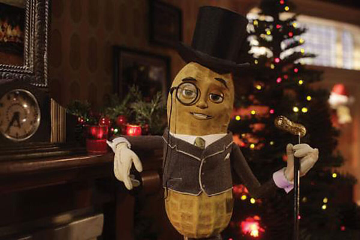 The ad shows dapper Mr. Peanut (voiced by actor Robert Downey Jr.) hosting a holiday party and saying that to throw a classy holiday party, "just serve classy snacks and be a gracious host."