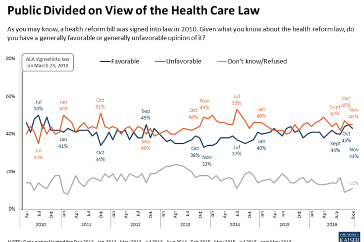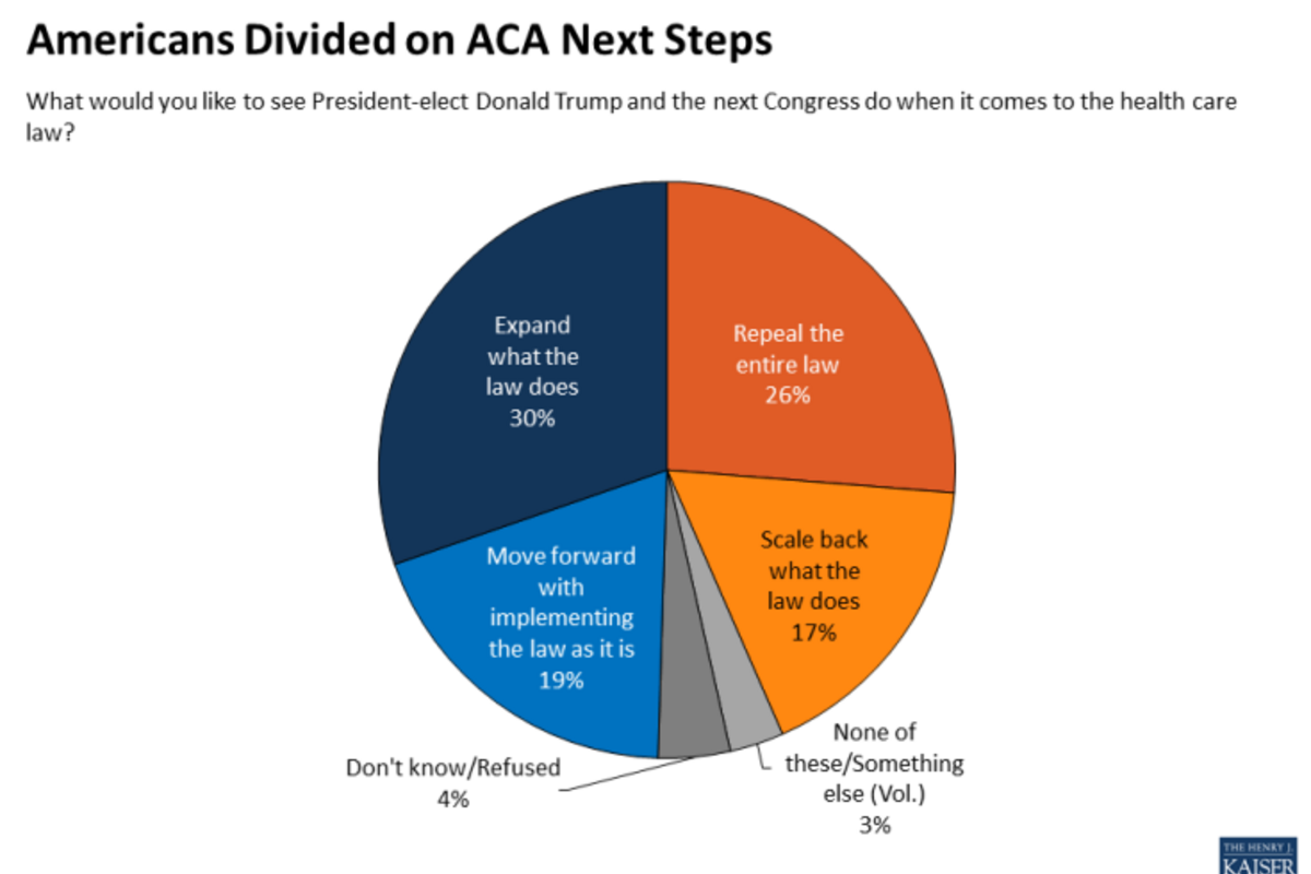 While Donald Trump promised repeatedly during his presidential campaign to repeal the health care law if elected 鈥 and Republican lawmakers have tried dozens of times to gut Obama鈥檚 2010 law 鈥 fewer Americans support a complete repeal now that President-elect Trump is readying to take office in January.