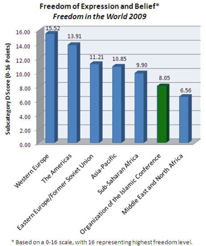 Who decides what views defame religion? Governments, of course. And the governments of the Organization of the Islamic Conference (OIC) have some of the worst records of respecting freedom of expression and belief in the world. Some of Freedom Houses's lowest-ranking countries, such as Egypt, Saudi Arabia, Pakistan, and Iran, are frequent sponsors. Other countries with less-than-stellar human rights records, such as Belarus, Venezuela, and Russia, also sign on, seemingly for the purpose of opposing international norms of human rights rather than out of any real solidarity with OIC countries.