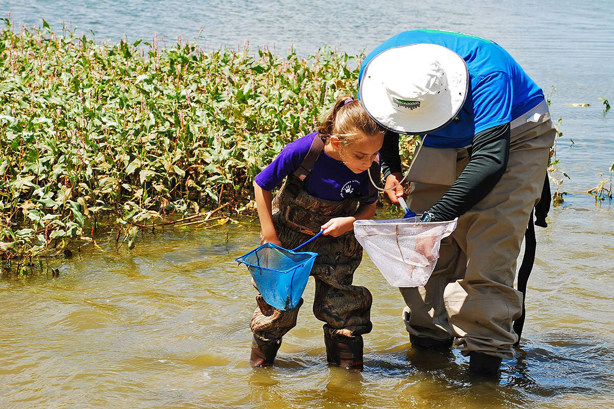 Francisco Varga, an urban ranger with Environmental Learning for Kids, helps a young girl learn about marine life at Barr Lake State Park. ELK is one of the organizations in the GoWild Northeast Metro Coalition funded by a $2.7 million Great Outdoors Colorado grant to serve Commerce City, northeast Aurora, and Denver鈥檚 Montbello and Northeast Park Hill neighborhoods.