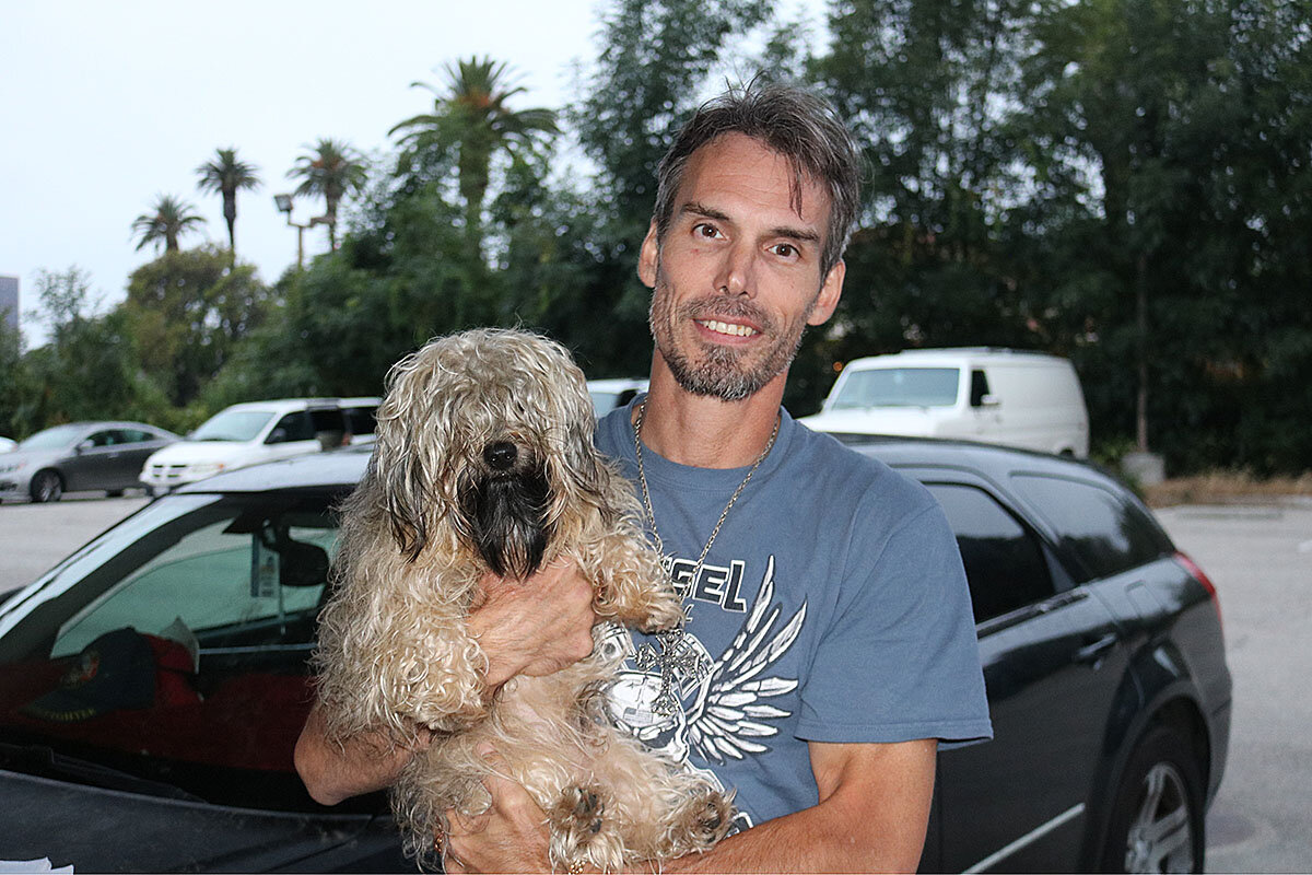 Homeless veteran Keith Roads holds Boo-Boo at Safe Parking LA, June 18. "They have food. The security is good. They watch at night, and I don鈥檛 have to worry," says Mr. Roads.