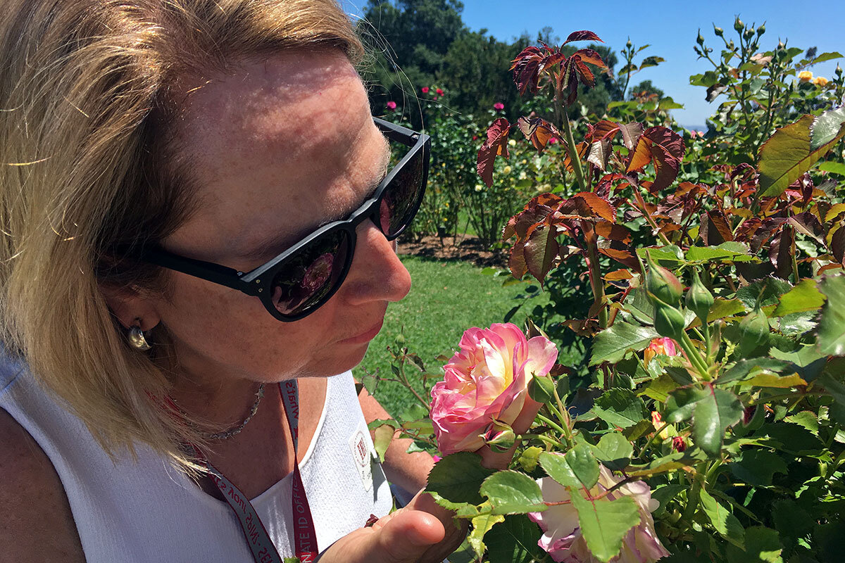 The lemon-fragranced 'Huntington's 100th' rose, 10 years in the making, is sampled by the Monitor's Francine Kiefer.
