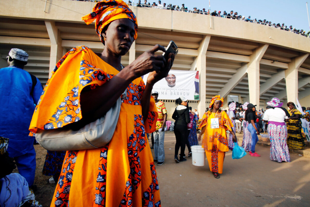 Gambians gather for the swearing-in of President Adama Barrow in Bakau, Gambia, Feb. 18, 2017.
