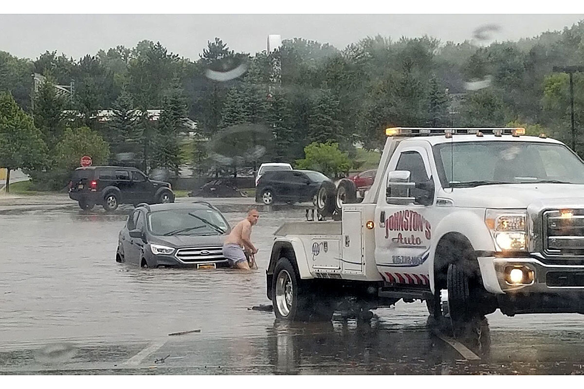 Mr. Venettozzi was called to a BJ's Wholesale Club parking lot Saturday where a car was stuck in waist-deep water. To hook up the tow, he had to crawl under the car, so he left his pants in the truck. He helped two more drivers caught in the flooding. His rescue efforts were and posted on Facebook. That鈥檚 when the Captain Underpants jokes spread.聽