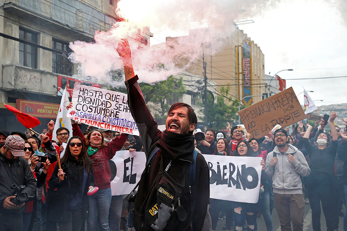 On Oct. 23, 2019, a Valparaiso demonstrator rallies in Chile, the latest Latin American country to erupt in protest. Demonstrations began after a subway fare increase earlier this month, but turned into massive rallies as Chileans expressed anger over growing inequality and the rising cost of living.