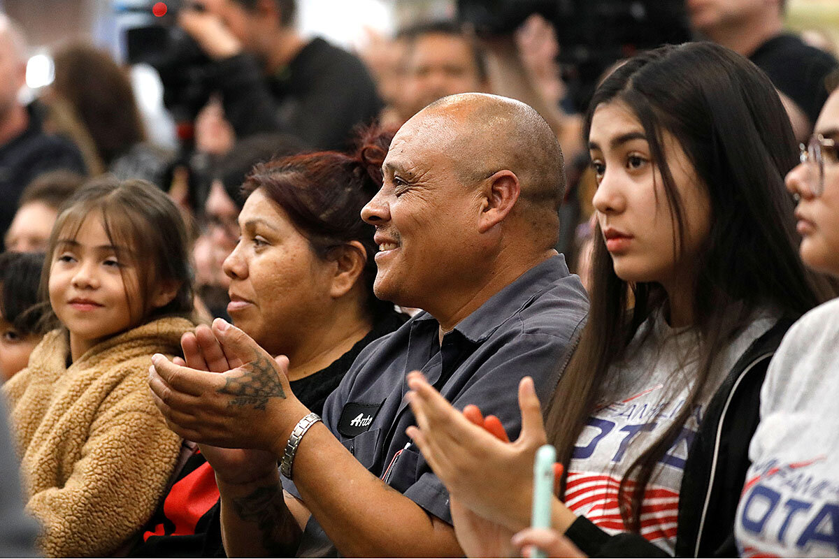 People clap for Democratic presidential candidate Elizabeth Warren at the Mi Familia Vota community event at the Cardenas Market in Las Vegas on Feb. 17, 2020.